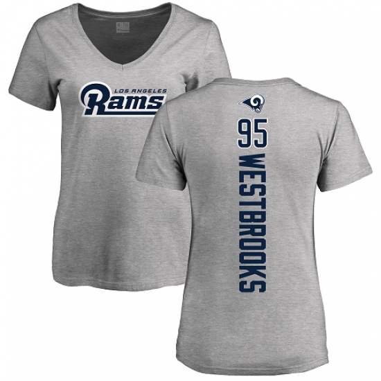 >NFL Women's Nike Los Angeles Rams #95 Ethan Westbrooks Ash Backer V-Neck T-Shirt