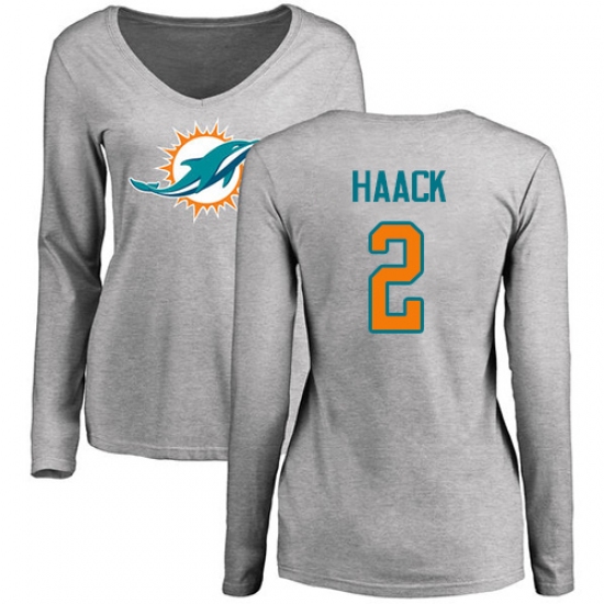 NFL Women's Nike Miami Dolphins #2 Matt Haack Ash Name & Number Logo Long Sleeve T-Shir