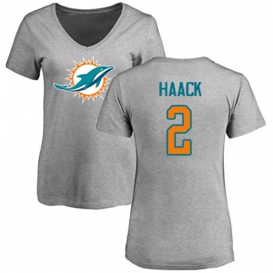 >NFL Women's Nike Miami Dolphins #2 Matt Haack Ash Name & Number Logo T-Shirt