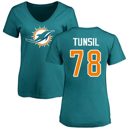 >NFL Women's Nike Miami Dolphins #78 Laremy Tunsil Aqua Green Name & Number Logo T-Shirt