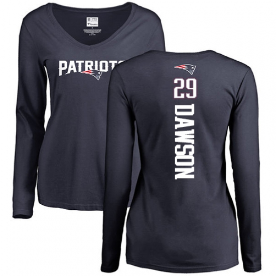NFL Women's Nike New England Patriots #29 Duke Dawson Navy Blue Backer Slim Fit Long Sleeve T-Shirt