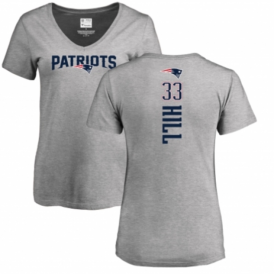 >NFL Women's Nike New England Patriots #33 Jeremy Hill Ash Backer V-Neck T-Shirt