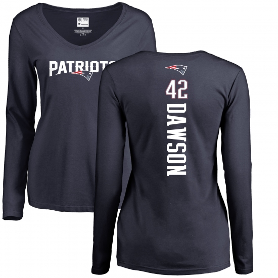 >NFL Women's Nike New England Patriots #42 Duke Dawson Navy Blue Backer Slim Fit Long Sleeve T-Shirt