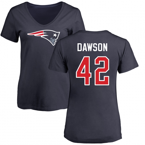 >NFL Women's Nike New England Patriots #42 Duke Dawson Navy Blue Name & Number Logo Slim Fit T-Shirt