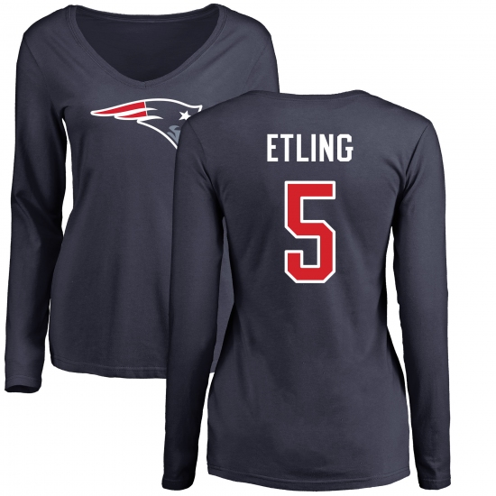 >NFL Women's Nike New England Patriots #5 Danny Etling Navy Blue Name & Number Logo Slim Fit Long Sleeve T-Shirt