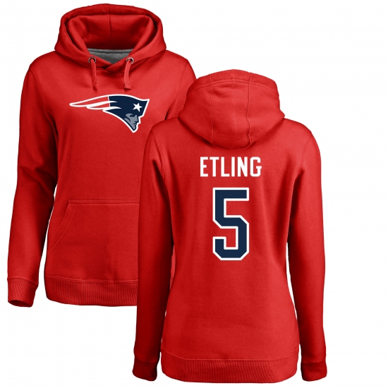 NFL Women's Nike New England Patriots #5 Danny Etling Red Name & Number Logo Pullover Hoodie