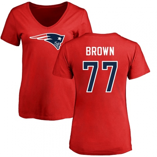 NFL Women's Nike New England Patriots #77 Trent Brown Red Name & Number Logo Slim Fit T-Shirt
