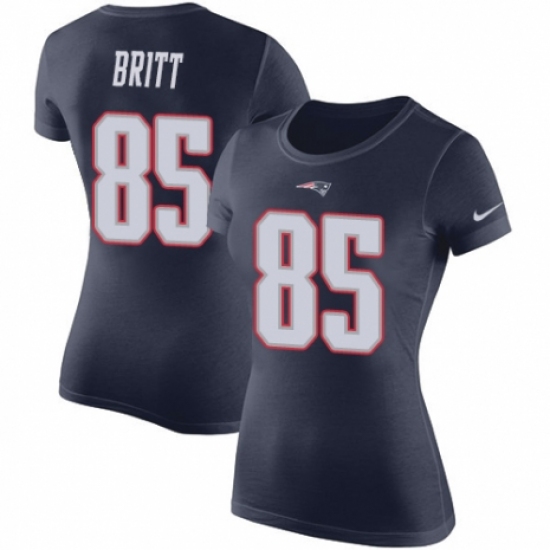 NFL Women's Nike New England Patriots #85 Kenny Britt Navy Blue Name & Number Logo Slim Fit T-Shirt