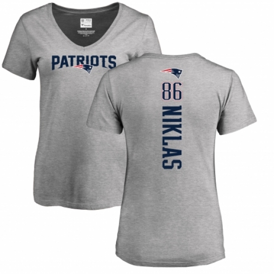 >NFL Women's Nike New England Patriots #86 Troy Niklas Ash Backer V-Neck T-Shirt