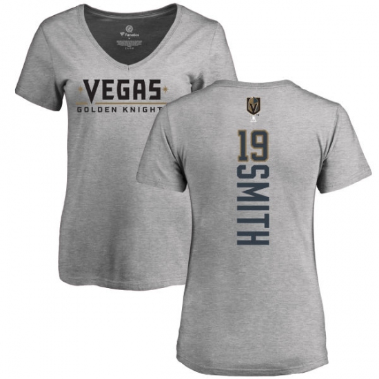 >NHL Women's Adidas Vegas Golden Knights #19 Reilly Smith Gray Backer Slim Fit V-Neck T-Shirt