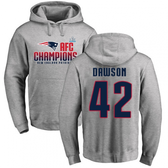 >Nike New England Patriots #42 Duke Dawson Heather Gray 2017 AFC Champions Pullover Hoodie