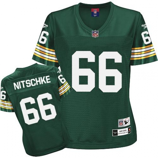 The Reebok Green Bay Packers #66 Ray Nitschke Green Women's Throwback Team Color Replica NFL Jersey by Reebok® is made with quick-drying nylon mesh and designed with screen-printed player and team graphics on the chest, back, sleeves and shoulders. 100% polyester diamond back mesh body, Polyester dazzle sleeves and yoke, Player's number screen-printed on the chest, back and sleeves, Player's name screen-printed at the upper back on a sewn down nameplate, Flat-knit collar with NFL® Equipment patch sewn at the point in the front, Woven jock tag shown at lower left front above the hem, Decorated in the team colors, Officially licensed