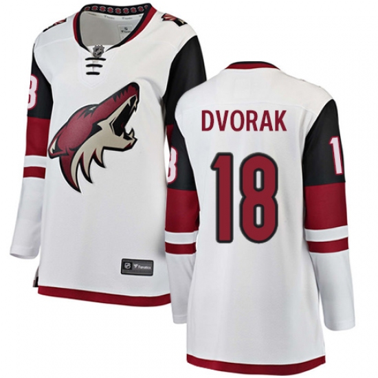 Home>NHL>Arizona Coyotes>Christian Dvorak>Women's Arizona Coyotes #18 Christian Dvorak Authentic White Away Fanatics Branded Breakaway NHL Jersey