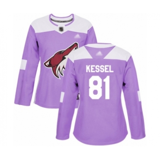 Women's Arizona Coyotes #81 Phil Kessel Authentic Purple Fights Cancer Practice Hockey Jersey