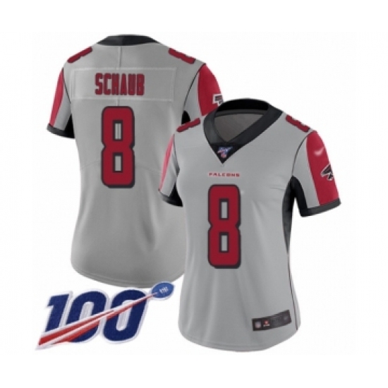 >Women's Atlanta Falcons #8 Matt Schaub Limited Silver Inverted Legend 100th Season Football Jersey