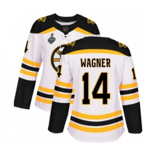 Women's Boston Bruins #14 Chris Wagner Authentic White Away 2019 Stanley Cup Final Bound Hockey Jersey