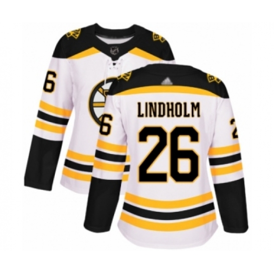 >Women's Boston Bruins #26 Par Lindholm Authentic White Away Hockey Jersey
