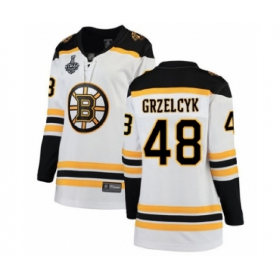 Women's Boston Bruins #48 Matt Grzelcyk Authentic White Away Fanatics Branded Breakaway 2019 Stanley Cup Final Bound Hockey Jersey
