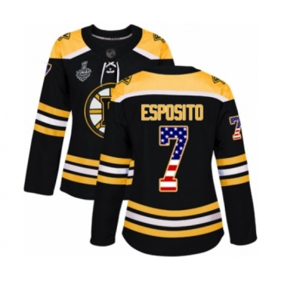 Women's Boston Bruins #7 Phil Esposito Authentic Black USA Flag Fashion 2019 Stanley Cup Final Bound Hockey Jersey