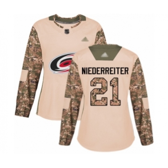 >Women's Carolina Hurricanes #21 Nino Niederreiter Authentic Camo Veterans Day Practice Hockey Jersey
