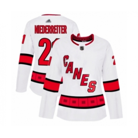 Women's Carolina Hurricanes #21 Nino Niederreiter Authentic White Away Hockey Jersey