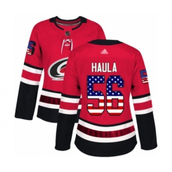 >Women's Carolina Hurricanes #56 Erik Haula Authentic Red USA Flag Fashion Hockey Jersey