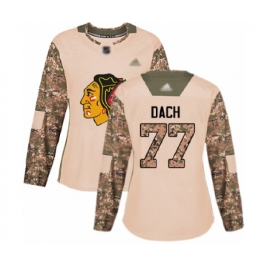 >Women's Chicago Blackhawks #77 Kirby Dach Authentic Camo Veterans Day Practice Hockey Jersey