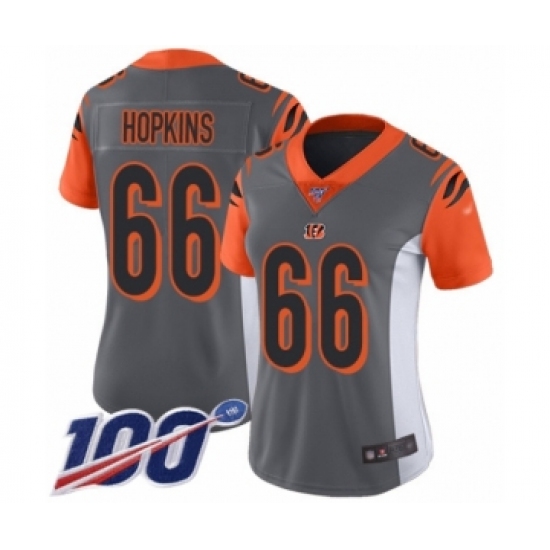 Women's Cincinnati Bengals #66 Trey Hopkins Limited Silver Inverted Legend 100th Season Football Jersey