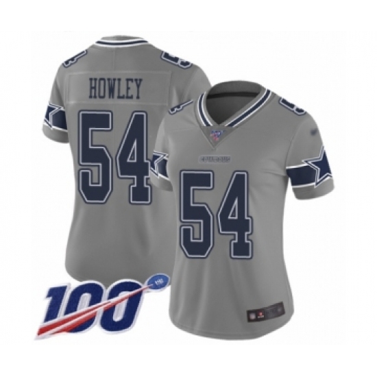 >Women's Dallas Cowboys #54 Chuck Howley Limited Gray Inverted Legend 100th Season Football Jersey
