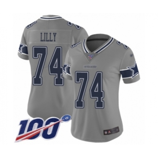 >Women's Dallas Cowboys #74 Bob Lilly Limited Gray Inverted Legend 100th Season Football Jersey