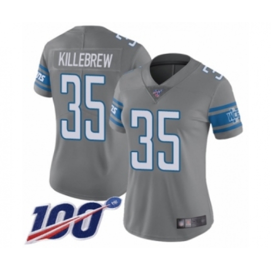 >Women's Detroit Lions #35 Miles Killebrew Limited Steel Rush Vapor Untouchable 100th Season Football Jersey