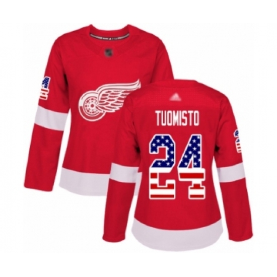Women's Detroit Red Wings #24 Antti Tuomisto Authentic Red USA Flag Fashion Hockey Jersey