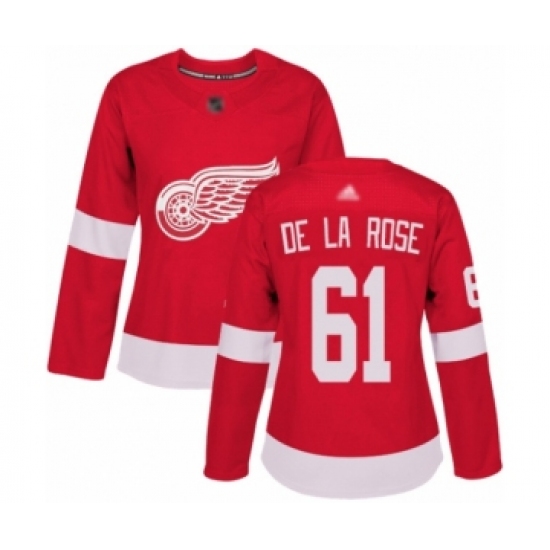 >Women's Detroit Red Wings #61 Jacob de la Rose Authentic Red Home Hockey Jersey