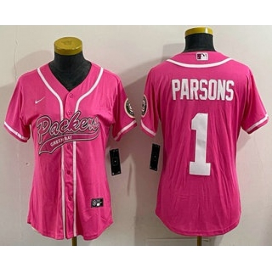 Women's Green Bay Packers #1 Micah Parsons Pink With Cool Base Stitched Baseball Jersey