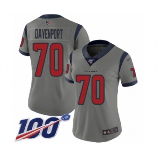 >Women's Houston Texans #70 Julien Davenport Limited Gray Inverted Legend 100th Season Football Jersey