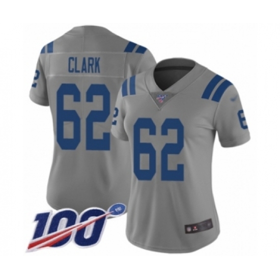 >Women's Indianapolis Colts #62 Le'Raven Clark Limited Gray Inverted Legend 100th Season Football Jersey