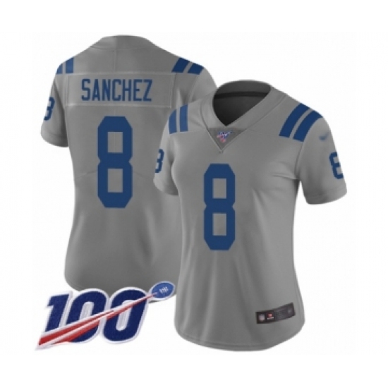 Women's Indianapolis Colts #8 Rigoberto Sanchez Limited Gray Inverted Legend 100th Season Football Jersey