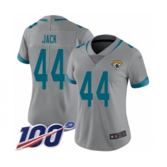 >Women's Jacksonville Jaguars #44 Myles Jack Silver Inverted Legend Limited 100th Season Football Jersey