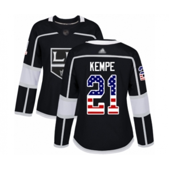 Women's Los Angeles Kings #21 Mario Kempe Authentic Black USA Flag Fashion Hockey Jersey