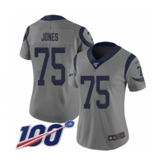 Women's Los Angeles Rams #75 Deacon Jones Limited Gray Inverted Legend 100th Season Football Jersey