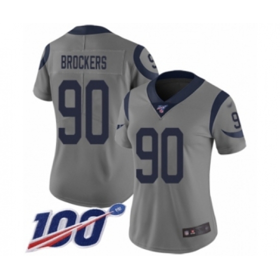 >Women's Los Angeles Rams #90 Michael Brockers Limited Gray Inverted Legend 100th Season Football Jersey