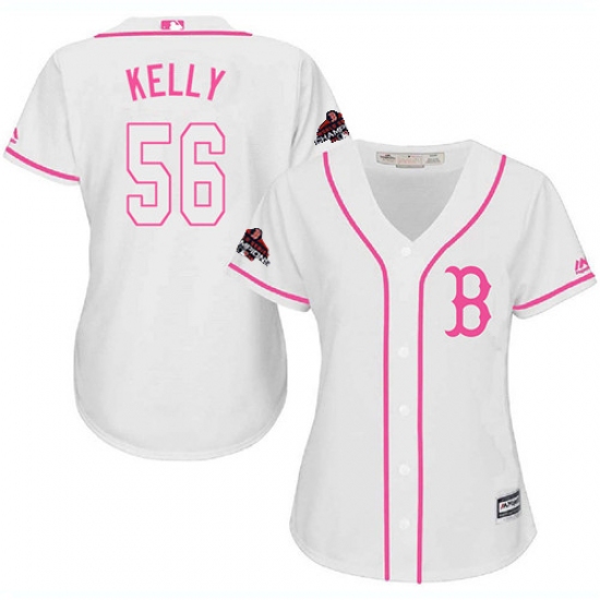 Women's Majestic Boston Red Sox #56 Joe Kelly Authentic Pink Fashion 2018 World Series Champions MLB Jersey