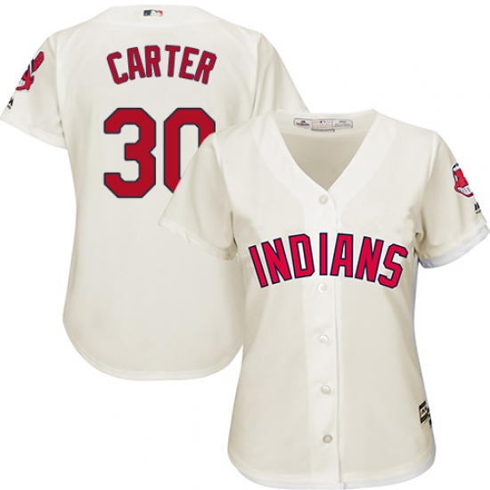 Women's Majestic Cleveland Indians #30 Joe Carter Replica Cream Alternate 2 Cool Base MLB Jersey