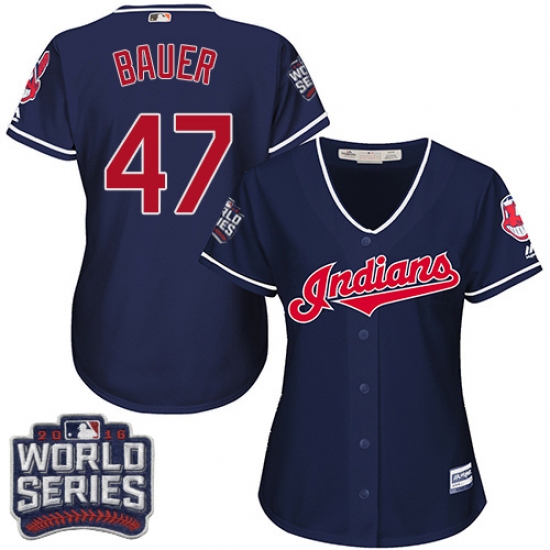 Home>MLB>Cleveland Indians>Trevor Bauer>Women's Majestic Cleveland Indians #47 Trevor Bauer Authentic Navy Blue Alternate 1 2016 World Series Bound Cool Base MLB Jersey