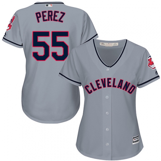Home>MLB>Cleveland Indians>Roberto Perez>Women's Majestic Cleveland Indians #55 Roberto Perez Replica Grey Road Cool Base MLB Jersey