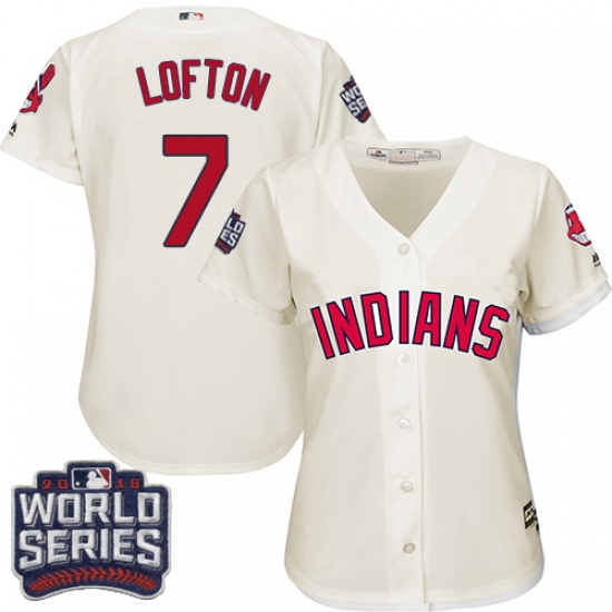 Home>MLB>Cleveland Indians>Kenny Lofton>Women's Majestic Cleveland Indians #7 Kenny Lofton Authentic Cream Alternate 2 2016 World Series Bound Cool Base MLB Jersey
