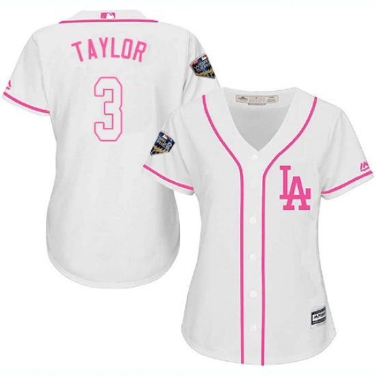 Women's Majestic Los Angeles Dodgers #3 Chris Taylor Authentic Pink Fashion Cool Base 2018 World Series MLB Jersey