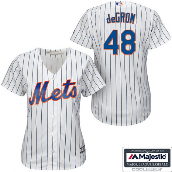 Home>MLB>New York Mets>Jacob deGrom>Women's Majestic New York Mets #48 Jacob deGrom Replica White/Blue Strip MLB Jersey