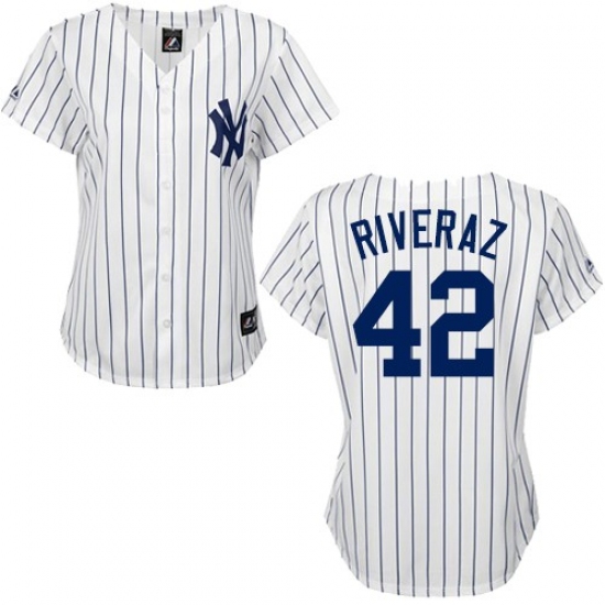 Home>MLB>New York Yankees>Mariano Rivera>Women's Majestic New York Yankees #42 Mariano Rivera Replica White/Black Strip MLB Jersey