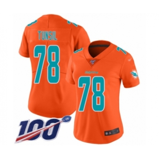 >Women's Miami Dolphins #78 Laremy Tunsil Limited Orange Inverted Legend 100th Season Football Jersey